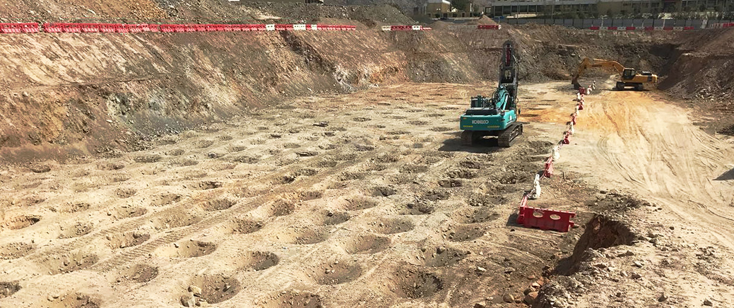 Upon reviewing the soil report Menard had decided to use Rapid Impact Compaction “RIC” to improve the soil at the villa plot and surrounding buildings to homogenize the soil underlaying the future villa. A total area of 11,000 m2 was improved in less than 6 working days which saved a considerable time to the client and owner.